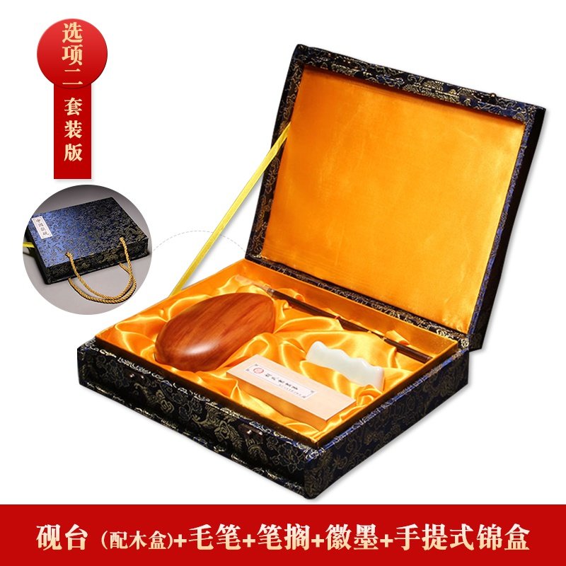 正品国家非也徽歙砚名师设计天然原石砚台莲金星木盒带盖文房四热门设计联盟服务商