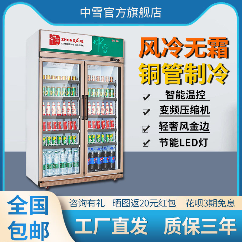 中雪立式冷藏展示柜铜管风冷无霜超市玻璃门冷柜保鲜冰柜商用冰箱热门设计联盟服务商