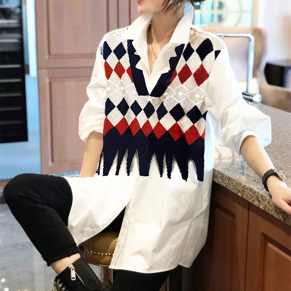 欧洲站春装2021新款欧货女装时尚精致拼接背心格子衬衫小众设计潮热门设计联盟服务商