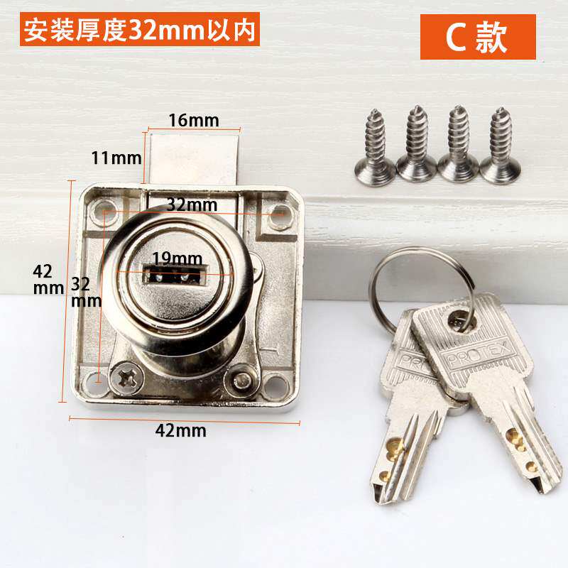办公桌抽屉锁柜子锁自装家用抽屉安全锁柜门老式带锁家具锁衣柜锁热门设计联盟服务商