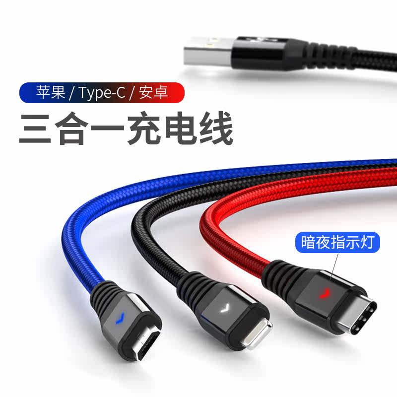 一拖三数据线手机充电线tpyec苹果快充闪充三合一ios多功能type-c热门设计联盟服务商